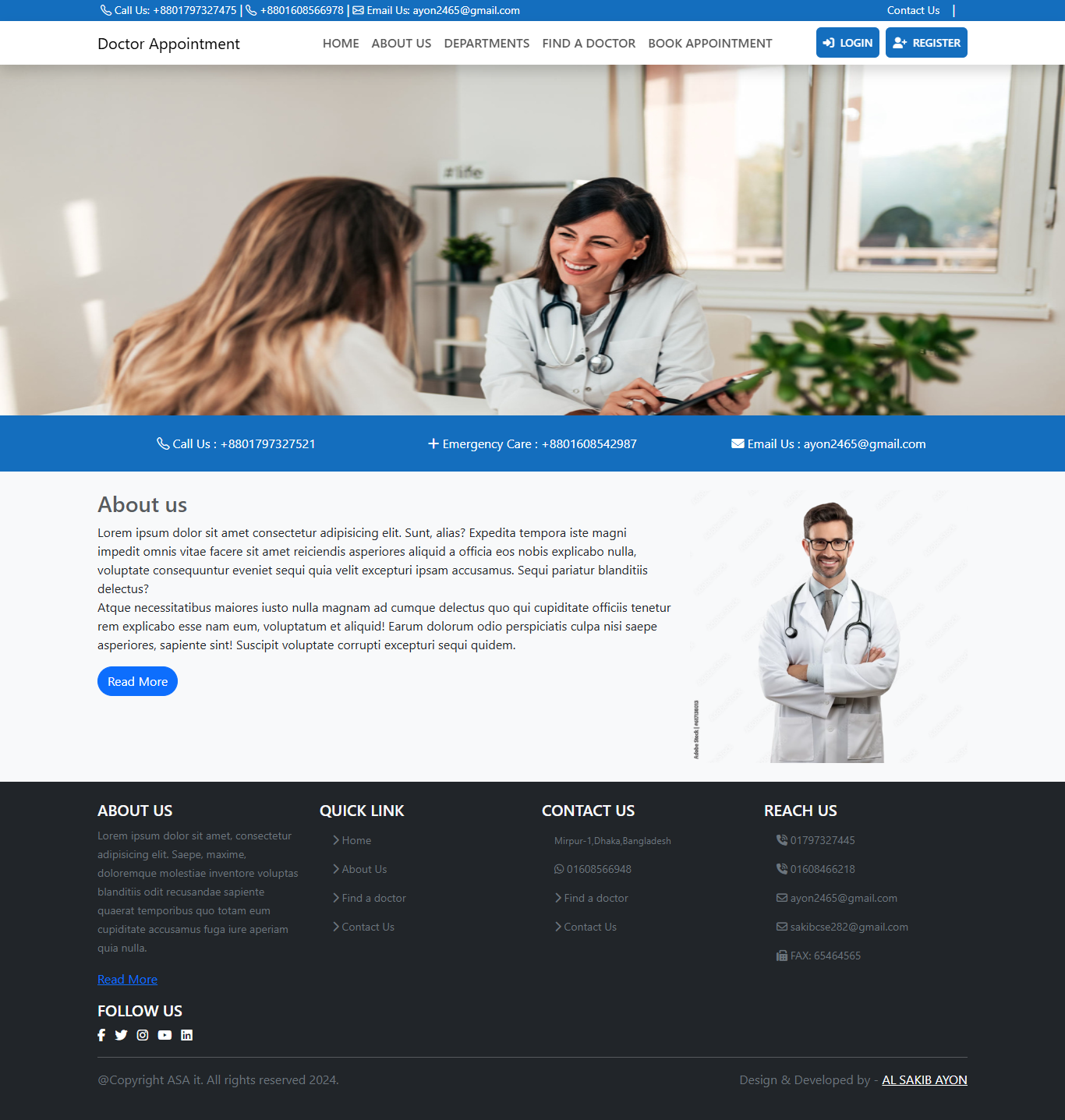 This Doctor Appointment System, developed using PHP, is a comprehensive solution that allows patients to schedule appointments with doctors seamlessly. The system streamlines the appointment process, enhancing efficiency for both patients and healthcare providers. Key features include: